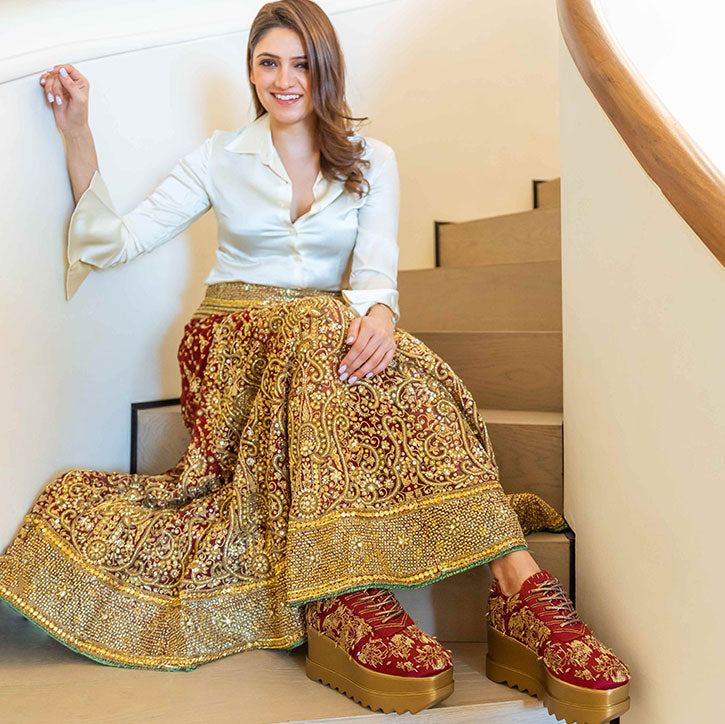 Who knew finding your dream pair of sneakers could be just a click away? Putting their distinctive contemporary touch to the traditional Indian art style, Anaar upgrades a pair of sneakers with ethnic inspiration. Whether it is to glam up with some bling or enjoy the intricate patterns, bridal sneakers from Anaar will fulfil your dream of wearing Bollywood wedding-like designs. The sneakers are available in a wide range of sizes which fit every foot just right.