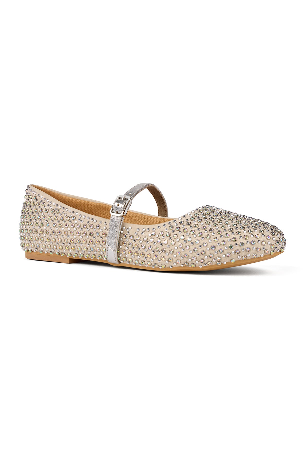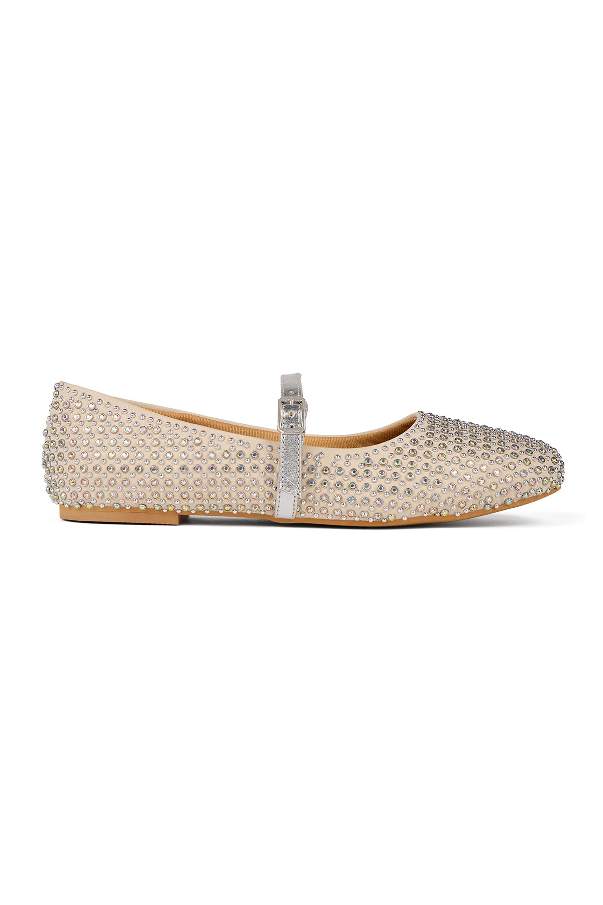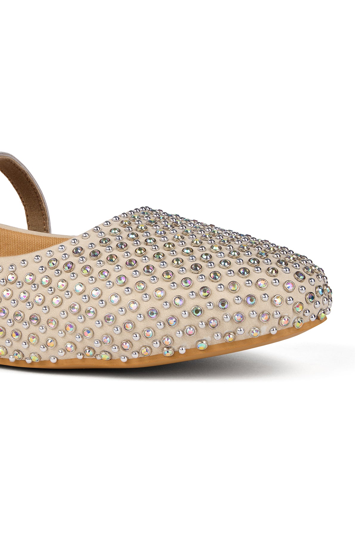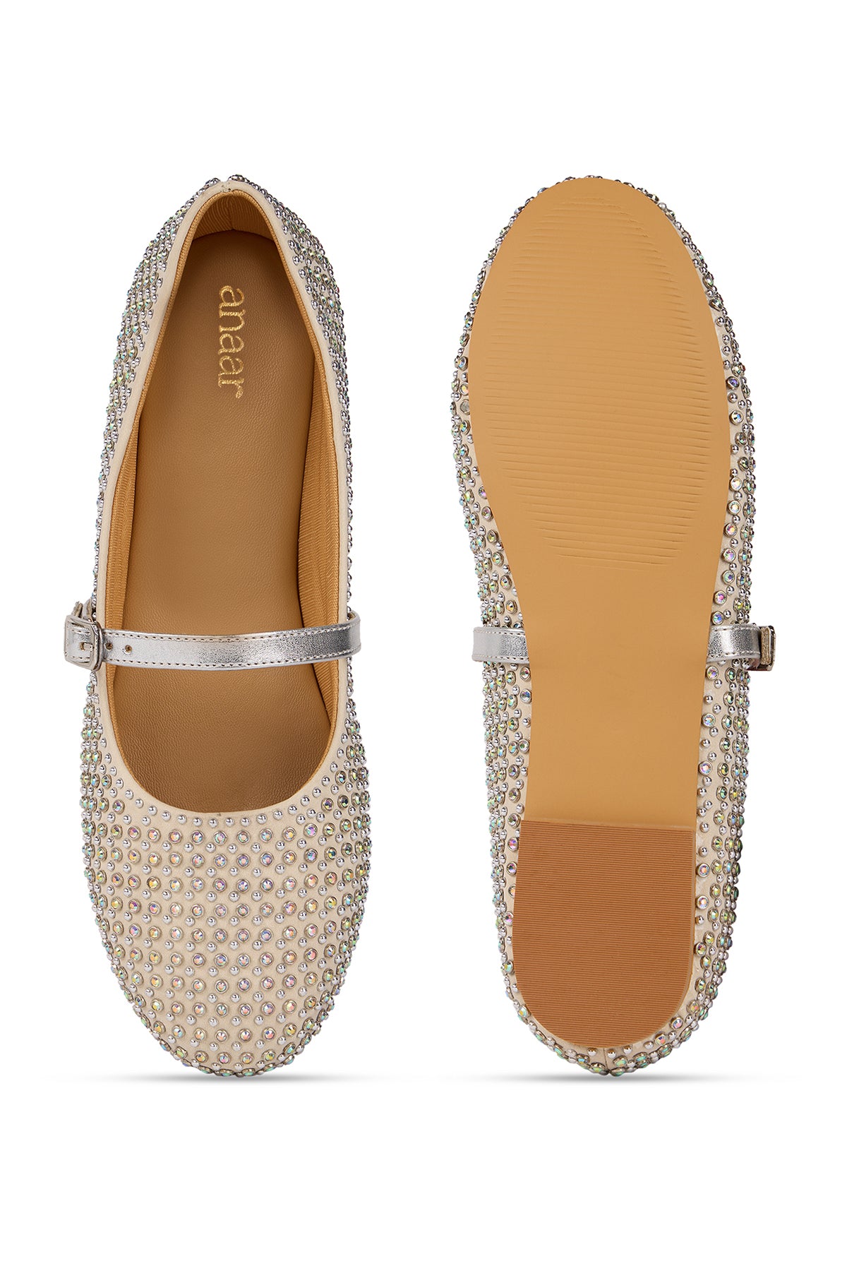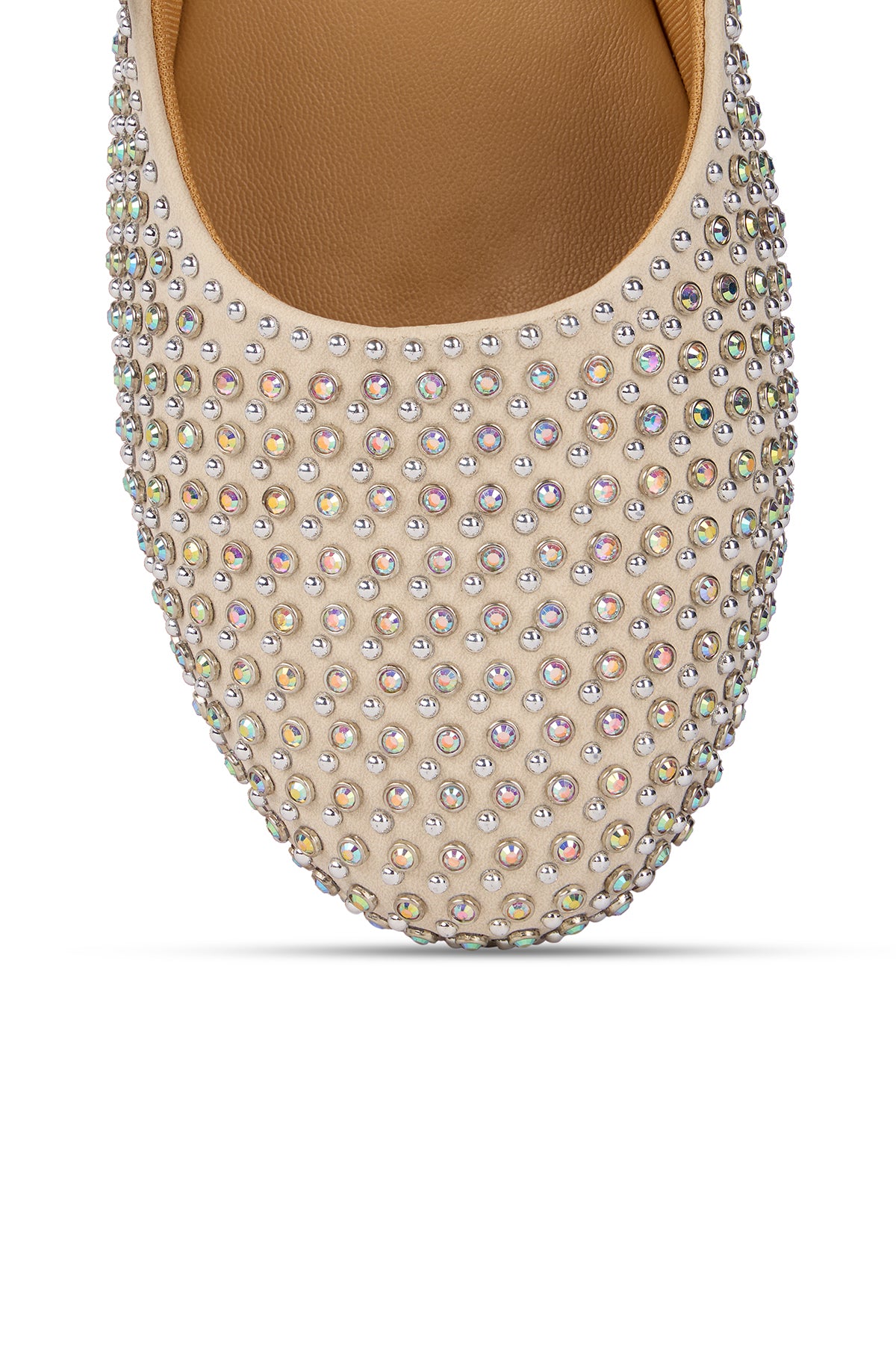Our Calcutta Chapter Ballerinas is crafted from beige suede and embellished with silver and iridescent studs throughout. Channeling the nostalgic charm of the city of joy, this pair is effortlessly jazzy and endlessly wearable; the perfect shoe to lift a languid, laid-back day when your outfit needs just a little something extra.